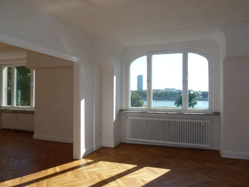 Düsseldorf-Oberkassel! Großzügige Eleganz mit Blick über den Rhein auf die Silhouette Düsseldorfs!